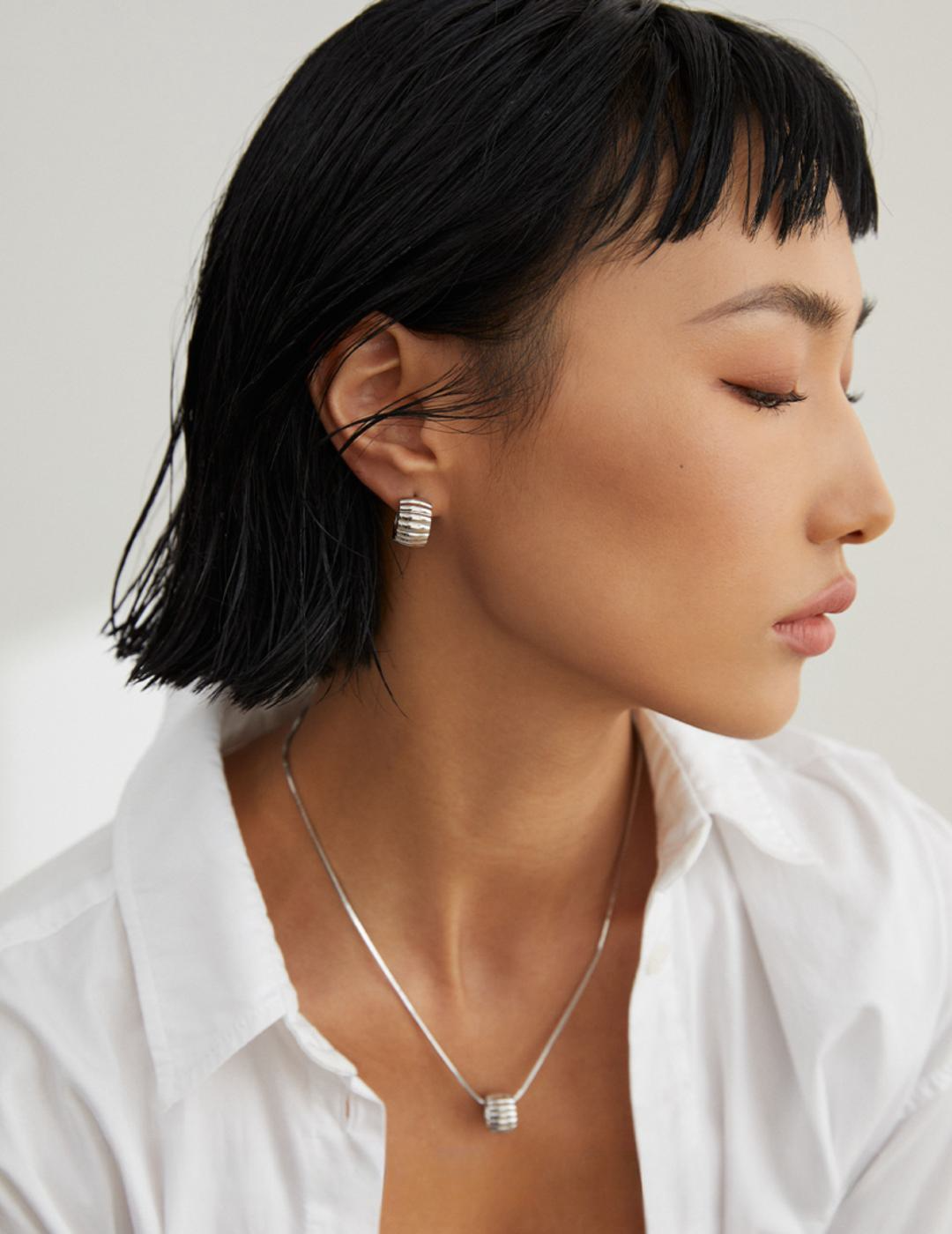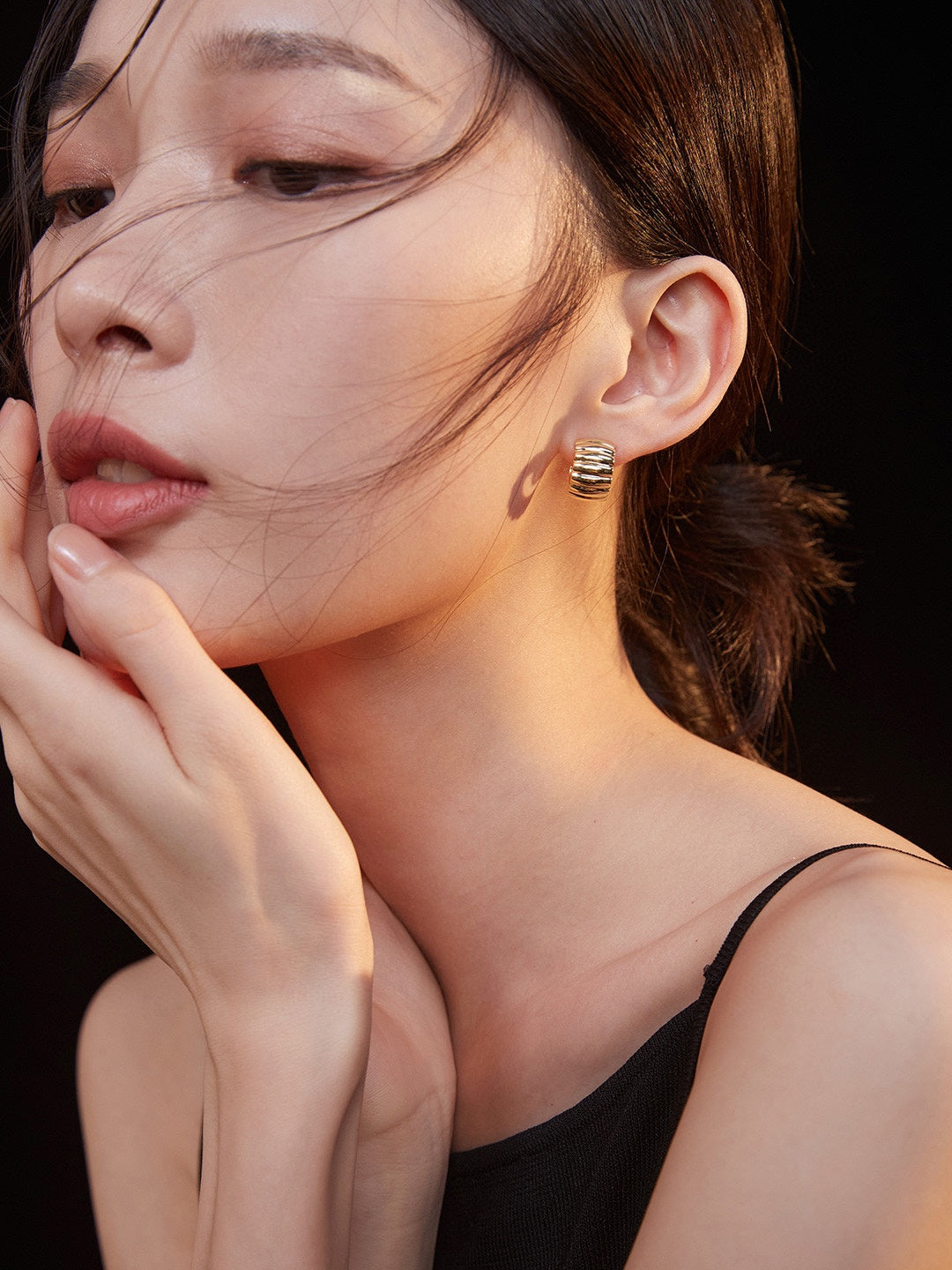 The Ripple is a pair of S925 sterling silver earrings, crafted with a fluid, ripple design that evokes the graceful movements of water. Featuring a luxurious 18K gold plating, the muted color palette lends a subtle warmth, imbuing it with a graceful and elegant aesthetic. Redefine your look with a timeless classic.